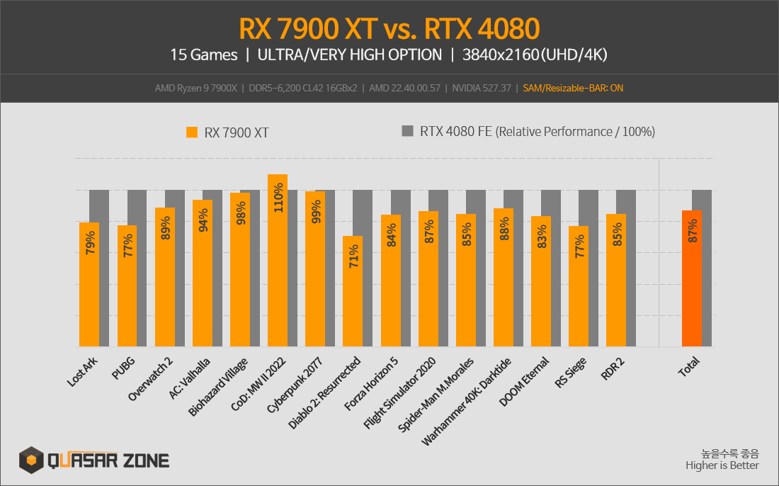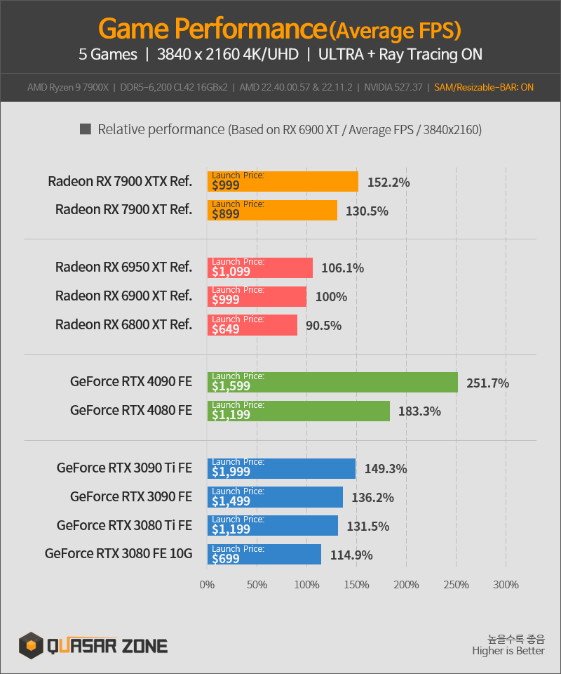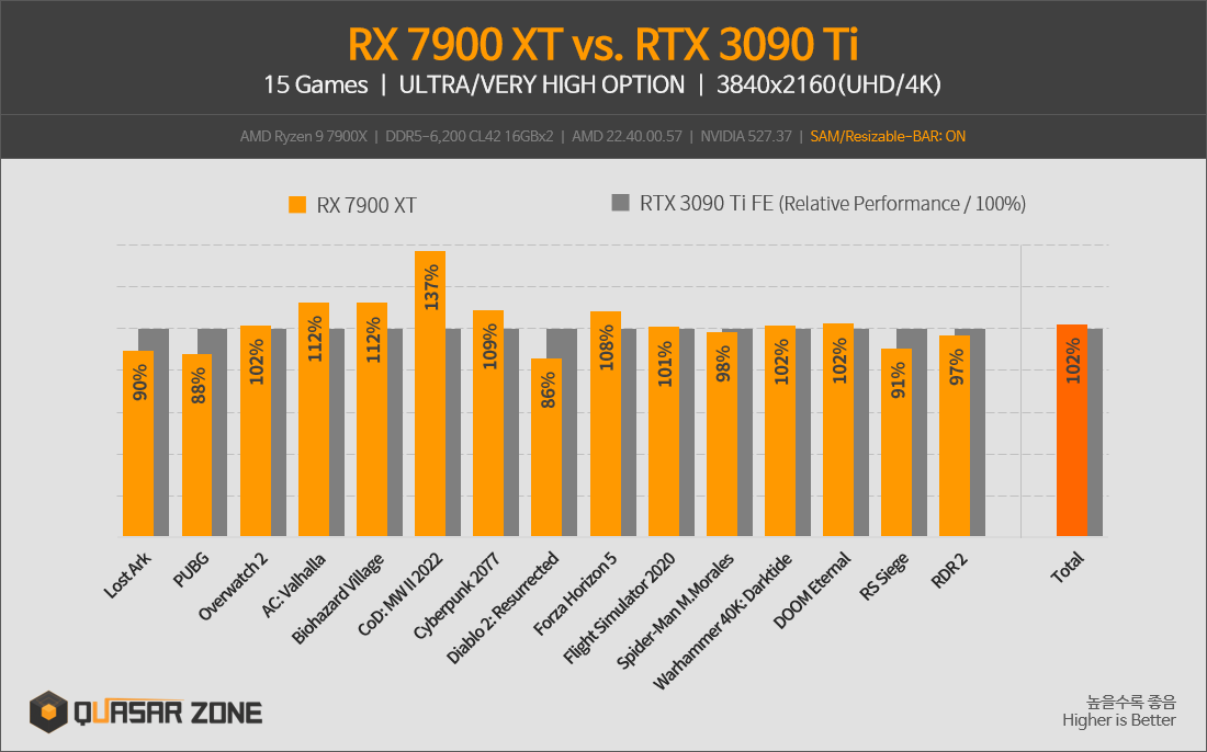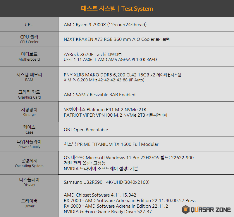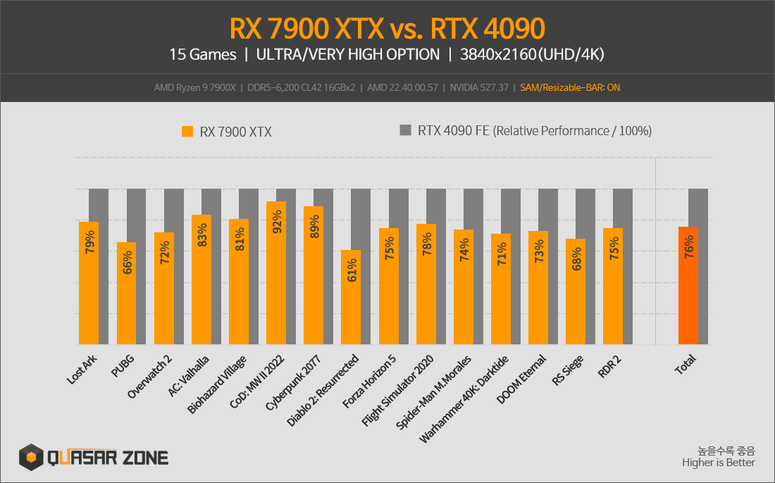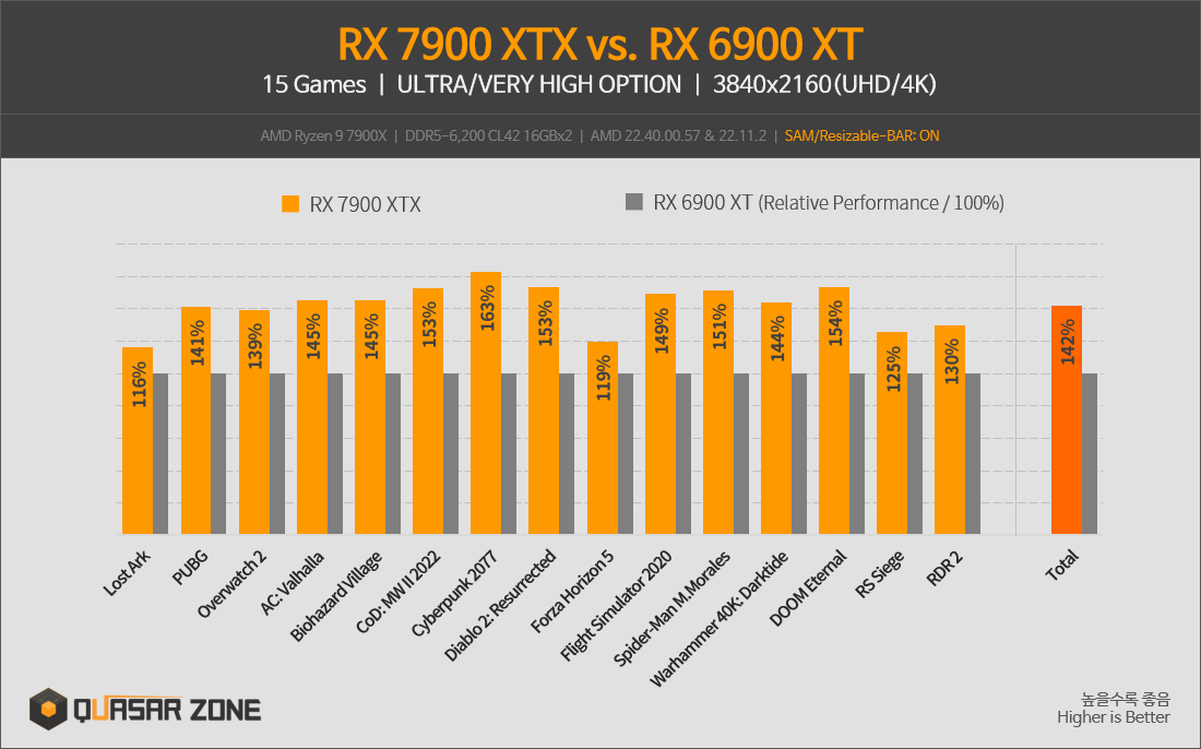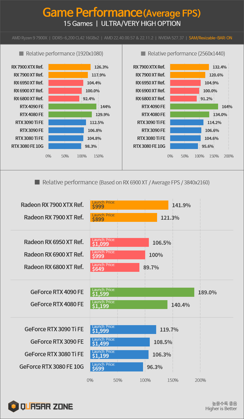 퀘이사존 라데온 RX 7900 XTX/RX 7900 XT 벤치마크